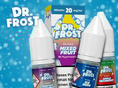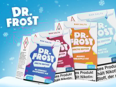 Die Arctic Edition von Dr. Frost kombiniert fruchtige Aromen mit einem erfrischenden Kühleffekt. Die Liquids dieser Serie sind in 10 mg/ml und 20 mg/ml Nikotinstärke erhältlich. „Arctic Blue Ice“ kombiniert den Geschmack von Blaubeer-Zuckerwatte mit einer erfrischenden Kühle, während „Coconut Lemonade Ice“ exotische Aromen von Kokosnuss und Limonade vereint. „Apple Black Honeydew Ice“ bietet eine Mischung aus Apfel, schwarzer Johannisbeere und Honigmelone mit einem kühlenden Nachklang.