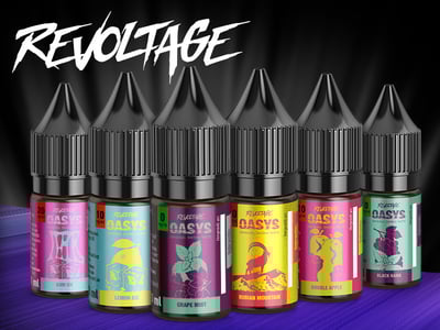 Die OASYS-Serie ergänzt das Hybrid Nikotinsalz-Angebot von Revoltage um zusätzliche Geschmackskompositionen. Auch diese gebrauchsfertigen Liquids werden in 10 ml Flaschen abgefüllt und sind in den Nikotinstärken 0 mg/ml, 10 mg/ml sowie 20 mg/ml erhältlich. Die Serie umfasst Sorten wie Nubian Mountain (Heidelbeer-Trauben Mix, exotische Noten), Lemon Ice (Zitrone mit eisiger Frische) und Black Nana (rote Traube, Minze, Kühle), sowie Gum Ice, Grape Mint und Double Apple.