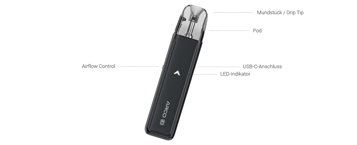 - 1x Arco Pod mit 0,6 Ohm (vorinstalliert)