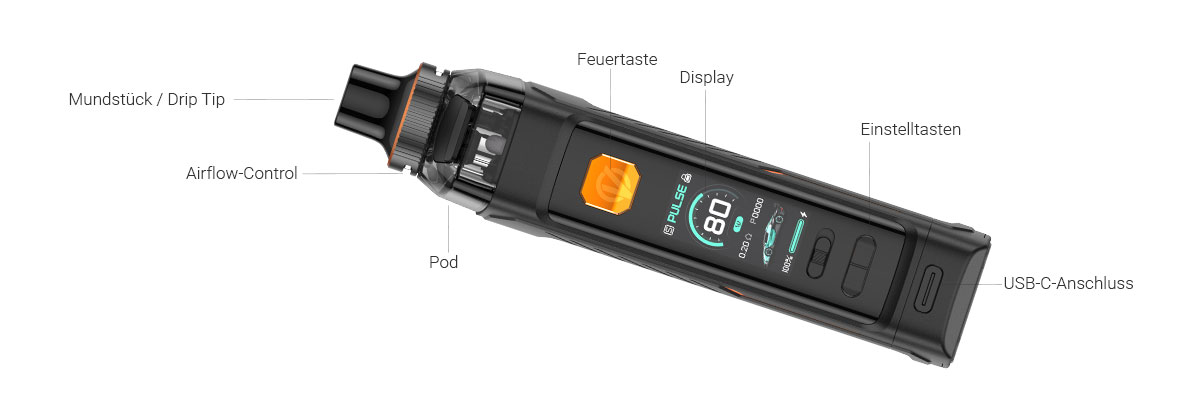 Das Füllvolumen des ARMOUR G Pods liegt bei 5 Millilitern. Sein integriertes Top Filling-System versetzt Sie in die Lage, frisches Liquid direkt von oben aufzufüllen, ohne den Verdampfer von der Aufnahme des Akkuträgers zu trennen. Dank der regelbaren Airflow Control haben Sie die Möglichkeit, den Zugwiderstand der E-Zigarette entsprechend Ihrer persönlichen Präferenzen anzupassen. Über einen Ring unterhalb des Mundstücks kann sie stufenlos gesteuert werden. Je weiter die Lufteinlässe geöffnet werden, desto restriktiver fällt der Zugwiderstand aus. Gerade bei geringen Widerständen am Verdampfer ist eine großzügige Luftzufuhr empfehlenswert. Der bei Auslieferung vorinstallierte GTX Mesh Head mit einem Widerstand von 0,15 Ohm kann bei Leistungen zwischen 60 und 75 Watt eingesetzt werden, während der ebenfalls mitgelieferte 0,3 Ohm GTX Mesh Verdampferkopf in einem Leistungsspektrum von 32 bis 45 Watt arbeitet. Die Verdampferköpfe sind im Plug and Pull-Design gestaltet, so dass ein Wechsel zügig durch Herausziehen und Einstecken vorgenommen werden kann. Weitere passende Verdampferköpfe mit Widerständen von 0,2 | 0,4 | 0,6 oder 0,8 Ohm sind als optionale Zubehörartikel hier bei uns im Shop erhältlich.