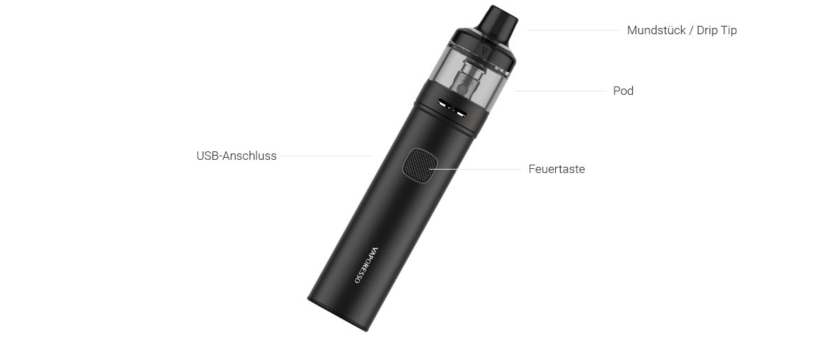 Aus dem Hause Vaporesso kommt die E-Zigarette namens GTX GO 40 und ist die kleinere Variante vom GTX GO 80 E-Zigaretten Set. Im Lieferumfang finden Sie folgendes vor: 1x GTX GO 40 Akku, 1x GTX Pod 22, 1x GTX Mesh Head mit 0,6 Ohm, 1x USB-C Kabel und 1x Bedienungsanleitung. Bei uns im Shop finden Sie weitere Heads, die Sie mit der Vaporesso GTX GO 40 E-Zigarette nutzen können. Folgende Heads kommen dafür in Frage: GTX Mesh Heads 0,3 Ohm, GTX Mesh Heads 0,8 Ohm und GTX Mesh Heads 1,2 Ohm.